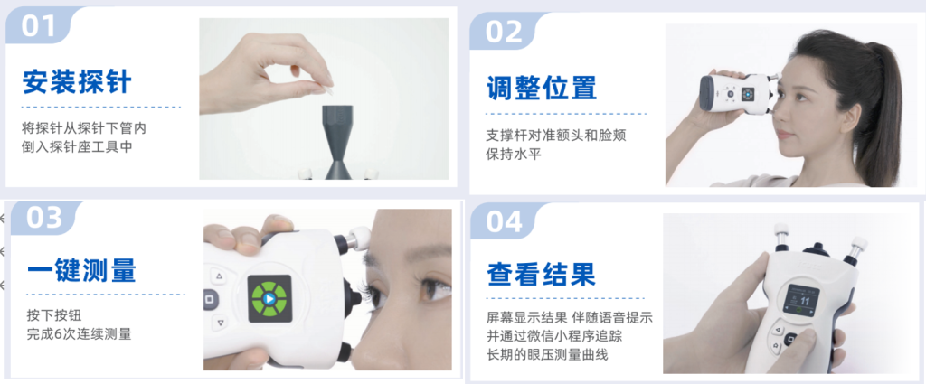 家用回弹式眼压计简易自我测量操作示意图